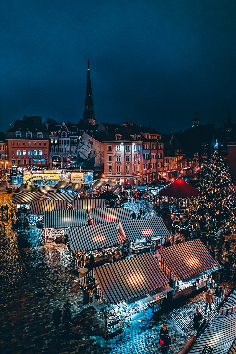 Rigas julmarknad är en älskad tradition som varje år förvandlar Domkyrkotorget till ett gnistrande vinterlandskap. Omgiven av kullerstensgator och färgglada byggnader i barock- och jugendstil, bjuder marknaden på en stämningsfull upplevelse fylld av ljus, dofter och värme.